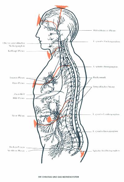 Lebenszentren ein, die untereinander über der Wirbelsäule verbunden sind. Von